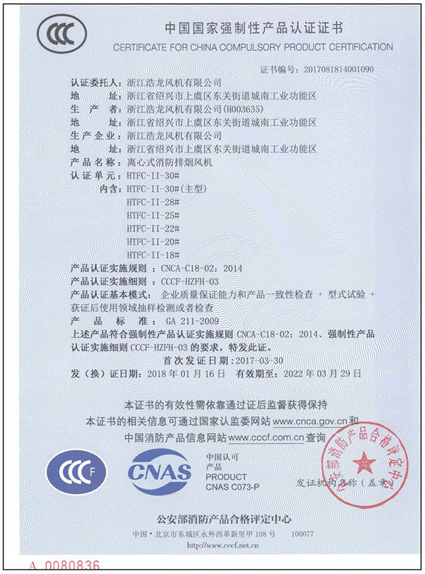 浙江浩龙风机有限公司坐落于“中国风机之乡”浙江省上虞区东关街道城南工业功能区,距上三高速入口.104国道1000米,处于上虞交通中心区域,地理位置十分优越。企业注册资金5700万元人民币,生产用地72亩,是一家专业研发、设计、制造风机、屋顶风机、隧道风机、防火排烟阀门、消防3C认证风机、排烟阀、防火阀、消声器、静压箱、控制系统等暖通成套设备并且提供专业售后服务的行业骨干企业,3C风机厂家。具有年产五万套各类风机,十万套防火,消声设备的能力。